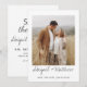 Personalize este convite de Save The Date duplo lado simples e elegante com uma foto e cinza escuro e branco com sua mensagem e detalhes. Este convite chic inclui tipografia de letra manuscrita estilosa moderna e elegante para a celebração especial do casamento a ser realizado.
