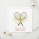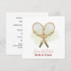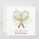 Anuncie seu par perfeito com estilo com este elegante convite de casamento Tennis Save the Date, apresentando duas raquetes de tênis dispostas em forma de coração romântico com flores em aquarela suave. O design inclui uma lavagem de quadra em tom pálido de menta para um visual limpo e moderno, mantendo a estética brilhante, minimalista e sofisticada.