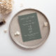 Apresentamos o nosso Convite de Save the Date em Verde Sage - uma mistura perfeita de minimalismo moderno e elegância atemporal. Criado com um design contemporâneo e elegante, este convite apresenta uma paleta suave e calmante de verde sage que evoca uma sensação de calma e serenidade. Ideal para casais que buscam um anúncio sofisticado e discreto para o seu dia especial.