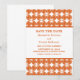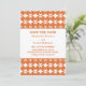 Anúncio de Save the Date moderno e elegante em laranja com um padrão art déco estiloso. Este convite de save the date é fácil de personalizar com os detalhes do seu casamento. Clique em "Personalizar" para encontrar mais opções de personalização.