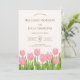 Este convite lindo e elegante é decorado com ilustrações com o tema de tulipas rosa. Tanto a frente quanto o verso são cuidadosamente projetados, e as cores rosa e verde são harmoniosamente misturadas. Possui fontes de caligrafia, sem serifa e serifa. Sinta-se à vontade para modificá-lo e usá-lo.