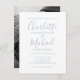 Apresentando sua foto, nomes de estilo de assinatura, este elegante e empoeirado cartão postal de casamento azul pode ser personalizado com suas informações em letra chic. Projetado por Thisnotme©