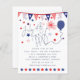 Um valor para o alternativo do ORÇAMENTO em tamanho menor de 4,5 x 5,6" de semirbrilho de 110 lbs, que é de espessura semelhante a um cartão postal (no entanto, não é adequado para uso como cartão postal). POR FAVOR, OBSERVE QUE HÁ UM convite por folha. Orçamento 4 de julho, 4° Convite de Script Red White Blue Stars. Script de na moda para 4 de julho e CHURRASCO se movendo para a corda de um balão. Personalize facilmente o resto do texto.