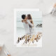 Um belo convite de casamento com um elegante design de roteiro em ouro