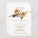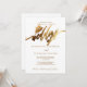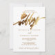 Um belo convite de casamento com um elegante design de roteiro em ouro.