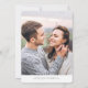 5 horas por dia, 7 dias por semana Convite de casamento simples e mínimo. Texto preto sobre fundo branco. Com a foto de volta. Parte de uma coleção de casamento.