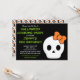 Este crânio bonito, vestindo um arco laranja em cima da cabeça dela, gostaria de ajudá-lo a convidar seus convidados para sua Festa especial de Halloween. É excelente para a festa de fantasia de uma criança, mas você pode editar o texto para ajustado de sua ocasião específica.