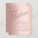 Convite moderno para Sweet 16. Fundo gradiente em rosa dourado e a palavra Dezesseis escrita com letras grandes. Personalize e adicione um nome e detalhes da festa.