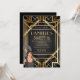Convite de Sweet 16 preto e dourado dos anos 1920 no estilo Art Déco. Confira nossos cartões de resposta e recepção correspondentes.