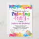 Nosso Convite de festas Colorido de Pinturas de Arte é o convite perfeito para qualquer festa temática de arte e pintura. Nosso design apresenta um fundo brilhante e colorido de pintura, uma mistura de letras ousadas e coloridas e gráficos bonitos de pintura, como um palete de tinta e pincéis de tinta. Isto é perfeito para uma festa de aniversário de arte, uma festa de pintura, convite de festas de estúdio de pintura em cerâmica e muito mais.