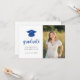 Este convite para a graduação apresenta um tema simples preto-e-branco com um boné azul e uma torneira de ouro. Adicione uma foto e personalize o texto na frente e atrás para incluir todos os detalhes da sua festa de formatura.