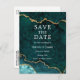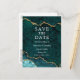 Cartão Postal de Convite de Teal e Dourado Elegante com Aquarela Moderna e Geodo de Ágata Mármore para Salvar a Data