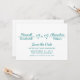 Anúncio de Save the Date da Equação do Coração fofo e caprichoso em turquesa, apresentando uma divertida equação matemática que "une" dois corações/pessoas. Este design nerd é uma escolha encantadora para um casal que ama matemática ou qualquer casal que queira algo simples, mas com um toque de capricho. Fácil de personalizar, basta adicionar os detalhes do seu casamento nos campos de texto fornecidos. Clique em "Personalize" para encontrar mais opções de personalização.