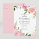 Este lindo convite de cartão postal para festa de Quinceañera em tons de rosa apresenta lindas flores em aquarela e folhas verdes acima de uma tiara prateada brilhante. Um convite feminino e delicado para o 15º aniversário da sua filha. Peônias brincalhonas e femininas criam uma adorável borda em torno da elegante escrita cinza.