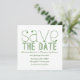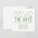 Anuncie o seu casamento com um anúncio moderno como este Convite de Tipografia Tendência para Salvar a Data em verde escuro, apresentando um design de tipografia elegante e sofisticado. Fácil de personalizar, basta adicionar os detalhes do seu casamento nos campos de texto fornecidos. Clique no botão "Personalize" para encontrar opções adicionais de personalização.