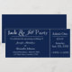 O convite azul marinho foi projetado para festas de chá de casamento Jack e Jill. O lado esquerdo do convite tem um lugar para a noiva e os nomes dos noivos e o local do evento. Personalize com seu próprio texto e informações. O lado direito do convite é separado com uma linha pontilhada para cortar e usar como um stub de ingresso para a entrada paga à parte. Personalize com seu próprio preço, data e hora. Este é um convite perfeito para usar como bilhete para festas de chá de casamento Jack e Jill!