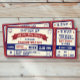 Um bilhete de ingresso de estádio de baseball inspirado na antiguidade é uma maneira excelente de anunciar um chá de fraldas com um efeito de tíquete de baseball antigo. Excelente para mães, fanáticos por beisebol e entusiastas do esporte.