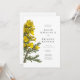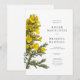 Uma ilustração digital original de flores de tojo amarelas no estilo de esboços botânicos vintage é apresentada neste convite.
