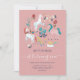 Convite de um ano de meninas cor-de-rosa mágico fo