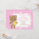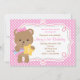 Um convite de urso bonito para raparigas com bolinhas rosa. No primeiro aniversário ou chá de fraldas.