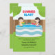 Um convite para o verão, com duas crianças em uma piscina de quintal, saltando com canhões de água. (FP). <br/>() A placa é fácil de personalizar com o seu texto, fonte, cor da fonte, opções de forma de papel e escolha de seis tipos de papel.<br/>() Não exatamente o que você está procurando? Todos os nossos produtos podem ser personalizados para atender às suas necessidades sem custos adicionais.<br/>() Basta entrar em contato conosco em askpixieprints@aol.com.<br/>() Coordenando os produtos disponíveis: Apenas nos pergunte!
