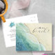 Capture a beleza serena da praia com este cartão-postal impressionante, com uma faixa litorânea pitoresca, pintada em tons suaves de azul, turquesa e bege. A trabalho de arte única de Victoria Grigaliunas adiciona um toque pessoal de elegância e tranquilidade a cada nota que você envia. Nas costas, uma charmosa tartaruga-do-mar aquática complementa o tema costeiro, melhorando a estética geral do cartão. Use os campos modelo para personalizar sua mensagem, garantindo que cada cartão enviado seja pessoal e memorável. Ideal para os convites para uma festa de praia de Verão ou para uma reunião familiar pelo mar, este cartão postal traz um toque da calma do oceano para qualquer ocasião festiva.