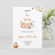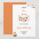 ANIVERSÁRIO HALLOWEEN ENJOYABLE PARTY VIBE CONVITATION Bonito convite de aniversário de Halloween com Spooktacular escrito em uma combinação de fontes divertidas, o duplo o em spook projetado para parecer com grandes olhos. O texto está cercado por estrelas, aranhas e um morcego. E um fantasma bonito diz aos seus convidados o nome e a idade da criança de aniversário. A parte traseira apresenta faixas correspondentes em preto, branco e laranja.