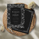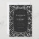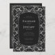 Estes convites para casamento de 5" x 7" apresentam um estilo gótico com um lugar falso preto e branco com a introdução, "Junto com as suas famílias, por favor juntem-se", juntamente com os marcadores para os primeiros nomes dos casais de casamento, data, hora, local, endereço do local com a mensagem na parte inferior, "recepção a seguir."
