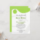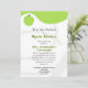 Um convite com um esquema de cores verde e branca. A frente apresenta design verde no topo e ilustração da maçã verde no topo à esquerda. Fundo de rotação. Personalize com o nome do professor, a nota, a localização e a data das suas costas para a orientação da casa aberta da escola. O lado oposto é verde estável.