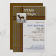 Este convite de xadrez marrom e azul rústico, com veado prateado é totalmente personalizável.