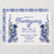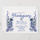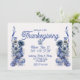 Convite de Ação de Graças em estilo azul delft com faisões e girassóis.