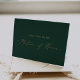Este delicado cartão dourado e verde de honra é perfeito para um casamento moderno. A design romântica minimalista apresenta uma magnífica e elegante tipografia amarela ouro champanhe num fundo verde esmeralda com um aspecto simples e limpo. A dentro da placa é vazio para você escrever uma mensagem pessoal.