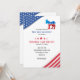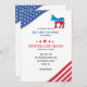 Um convite fundraising patriótico para o partido democrático. O fundo do branco caracteriza um canto azul superior com estrelas brancas e um canto mais baixo com as listras vermelhas e brancas. Igualmente caracteriza o ícone democrático do asno. (<a href="https://www.freepik.com/free-photos-vectors/design">Vetor do design criado pelo freepik - www.freepik.com</a>). (<a href="https://www.freepik.com/free-photos-vectors/celebration">O vetor da celebração criado perto ibrandify - www.freepik.com</a>). <br/><br/>O cartão é fácil de personalizar com seus fraseio, opções da pia batismal, do cor da pia batismal, as de papel da forma e escolha de seis tipos de papel<br/><br/>Não exatamente que você está procurando? Todos nossos produtos podem ser projetados para encontrar suas necessidades em nenhuma sobretaxa<br/><br/>Contacte-nos simplesmente em askcottonlamb@gmail.com. <br/><br/>Produtos de coordenação disponíveis: Apenas pergunte-nos!"