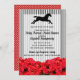 Os convites de chá de panela de Derby têm listras brancas e pretas, rosas vermelhas e uma silhueta de cavalos de corrida. Todas as fontes, texto, cores de texto, tamanhos podem ser modificados, basta clicar no link Personalizar mais. Ventiladores, pratos, guardanapos, rótulos de garrafas de vinho, fãs de mão e mais disponíveis em nossa loja.