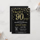 Convite de Aniversário de 90 com Fundo de Diamante Negro e Dourado. Dourado Confetti. Aniversário Adulto. Homens ou Mulheres Aniversário. Para mais personalização, clique no botão "Personalizar" e use a ferramenta design para modificar este modelo.