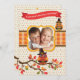 Comemore o aniversário do novembro/feriado da sua criança com este convite adorável, festivo. Caracteriza uma janela decorativa da foto com a uma coruja que sentam-se em um ramo de árvore do outono e a outra empoleirada sobre uma banda alaranjada da xadrez. Ambas as corujas estão vestindo seus chapéus do peregrino.