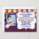 Convide seus convidados a sua festa de aniversário pequena dos sluggers em uma maneira do divertimento com este convite branco e azul vermelho do aniversário da foto.