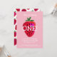 Esta morango ilustrada bonito na parte dianteira pode ser personalizada para TODA A idade. Design bonito e do divertimento para meninas especiais. Você pode ajustar a cor do convite.