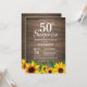 Convite do aniversário da surpresa rústica do girassol 50th. Flores florais e fundo de madeira rústico. Vintage do país retro. Aniversário das mulheres. 12o 13o 15o 16o 18o 20o 2ø 30o 40th 50th 60th 90 100th do 80 do 70, algumas idades. Digitas Printable. Para uma personalização mais adicional, clique por favor "personalizam-no" botão e usam-nos nossa ferramenta de design para alterar este modelo.