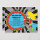 Comece sua celebração fora do direito com este convite SUPER. Excelente para esse super-herói em sua vida! É uma adorável convida com fundo de travamento do olho do am. É preto, cinza e amarelo. Há uma bolha irregular com uma peça exterior do verde limão então um vermelho com um centro azul brilhante. Ao lado dele é um super-herói vestido em vermelho e em verde com um cabo azul que marcha para a frente. Tem o cabelo louro fundir para trás. Verifique para fora os muitos outros produtos e design nesta linha. ilustrações do ©JW