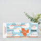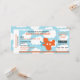 Convite do bilhete de avião em alaranjado & no azul com fundo da nuvem. Aperfeiçoe para a festa de aniversário/chá de fraldas dos meninos.