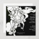 Convite preto e branco do aniversário com fundo preto e um cavaleiro branco em seu cavalo com a lança pronta para golpear. Texto customizável no branco