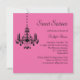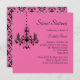 Um teste padrão francês de fleur de lise decora a parte traseira deste convite do aniversário, quando um candelabro de cristal destacar a parte dianteira. Mostra-se no papel básico; contudo, eu sugiro o shimmer do papel metálico do gelo para o glitz adicionado.