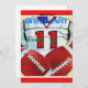 Um convite de aniversário projetou com os meninos da criança de 10 anos na mente que apreciam o futebol. Eu estava pensando de meus próprios filho e netos que são crescidos agora mas o pensamento do que gostaria como um convite para seu 10o aniversário. Há dois futebóis e um jérsei na parte dianteira e nos lugares para toda a informação uma deseja transportar aos convidados. Bênçãos