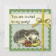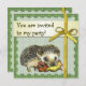 Convites maravilhosos com um hedgie adorável. "É meu agora!" Ouriço pequeno lindo feliz com seu achado afortunado - um núcleo de uma maçã:) de uma ilustração pastel do óleo original pela ligação de Tanya