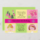 Comece sua celebração fora do direito para essa menina especial que gosta de pampered. com este partido bonito dos termas convide. Se é um partido em casa ou para fora este é o convite perfeito! Tem uma bandeira do rosa quente através do centro com as duas flores roxas em cada extremidade. o convite é quebrado acima em 6 quadrados que são verde limão, amarelo e rosa. Há uns chinelos e um perfume em um quadrado. Há vernizes para as unhas em outros e os dois inferiores têm as meninas que pampered. Verifique para fora os muitos outros produtos e design nesta linha. ©babystar