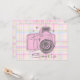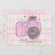 Cinzas afligidas do revestimento e câmera cor-de-rosa do vintage com a palavra SORRISO. Fundo da xadrez. Original de PinkInkArt!