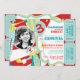 Os palhaços de circo do divertimento nos stilts, manipulando e guardarando balloons o cartão de aniversário do tema com a inserção da foto nos azuis, no vermelho, no branco, e no amarelo com os bilhetes do raffle no lado. Apenas perfure os lados para um fácil rasgam fora!