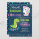 Convite do aniversário dos unicórnios e dos dinossauros.