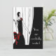 Um convite à moda do estilo do art deco em preto, em branco, e em vermelho, mostrando uma senhora elegante que retem uma cortina para revelar um convite. Personalize a parte dianteira e o texto traseiro para serir suas necessidades. Excelente por festas de aniversário e ano novo das celebrações.